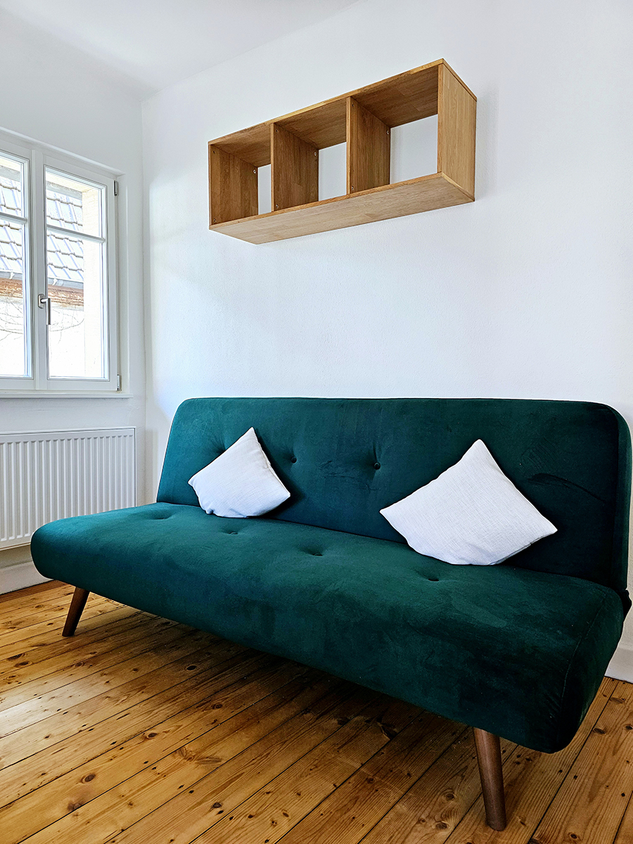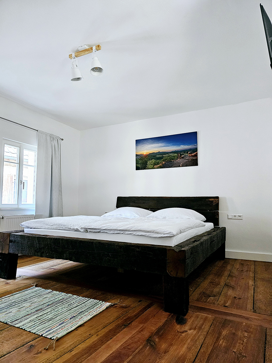 In der früheren Knechtstube haben wir nun ein 60m² großes Ferien-Apartment für unsere Pfalz-Liebhaber eingerichtet. „Zum Emma“ benannt, nach einem der Knechte, der damals viele Jahre, ganz zuverlässig jedes Jahr zur Ernte kam.