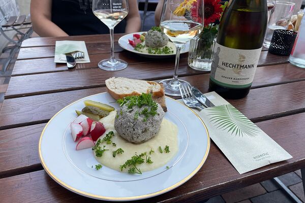 An den Freitagen im September und Oktober bieten wir außer unseren Flammkuchen z. Bsp. auch "Pfälzer Fläschknepp" mit Meerrettichsauce , eine Hausgemachte Suppe und verschiedene weitere Speisen an.
